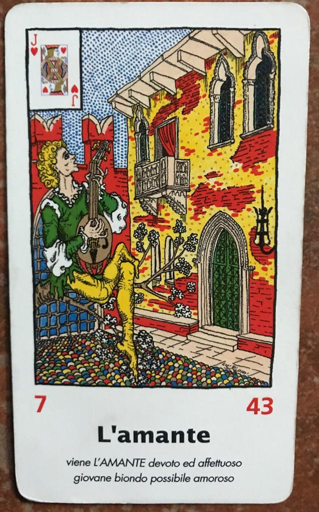 La carta raffigura un giovane, probabilmente biondo o con capelli chiari. È un amante