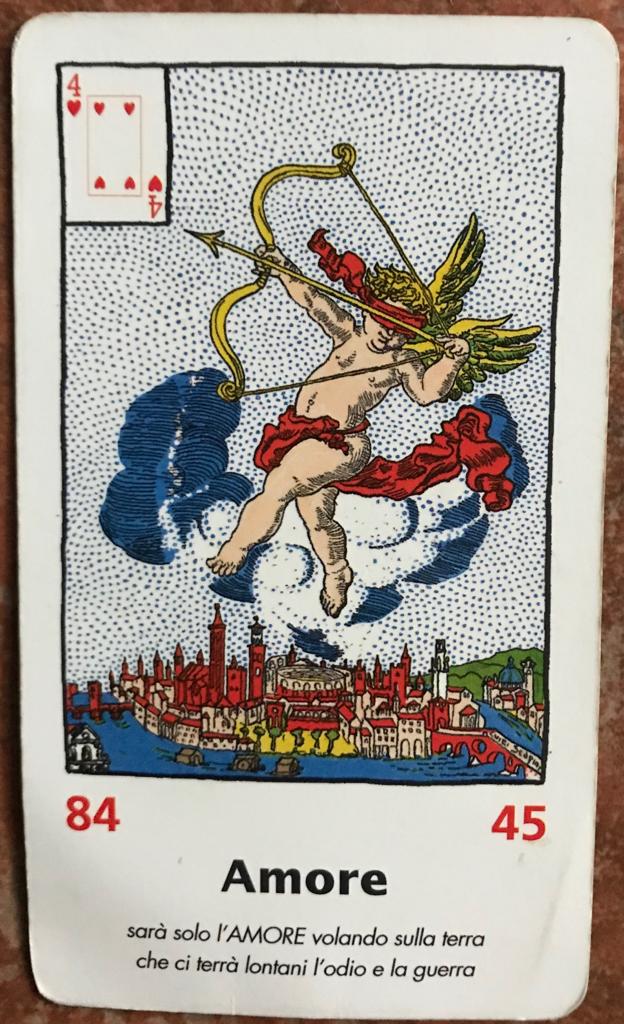 Sulla carta c’è Cupido, il Dio dell’amore, in piedi o raffigurato in volo.